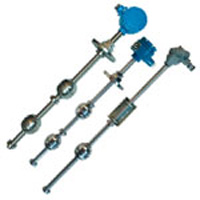 插入式磁性浮球变送器的主导管内装有一组干簧管和准确电阻,当管外带有环型磁钢的浮球因浮力随液位上下变化,相应在主导内位于液面处地干簧管在磁场作用下依次闭合(接通)使回路电阻值发生变化,经专用模块转换成电流输出。